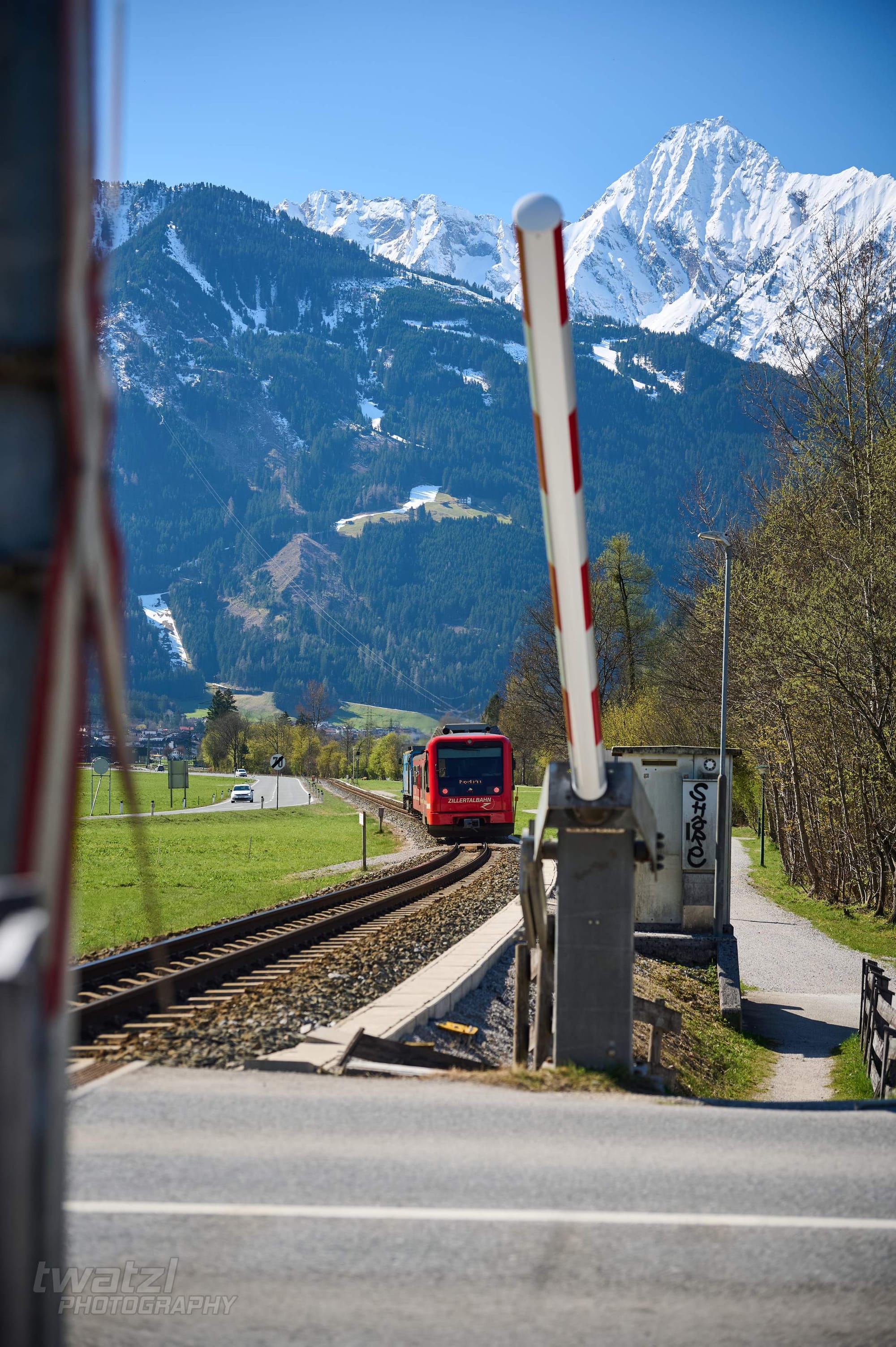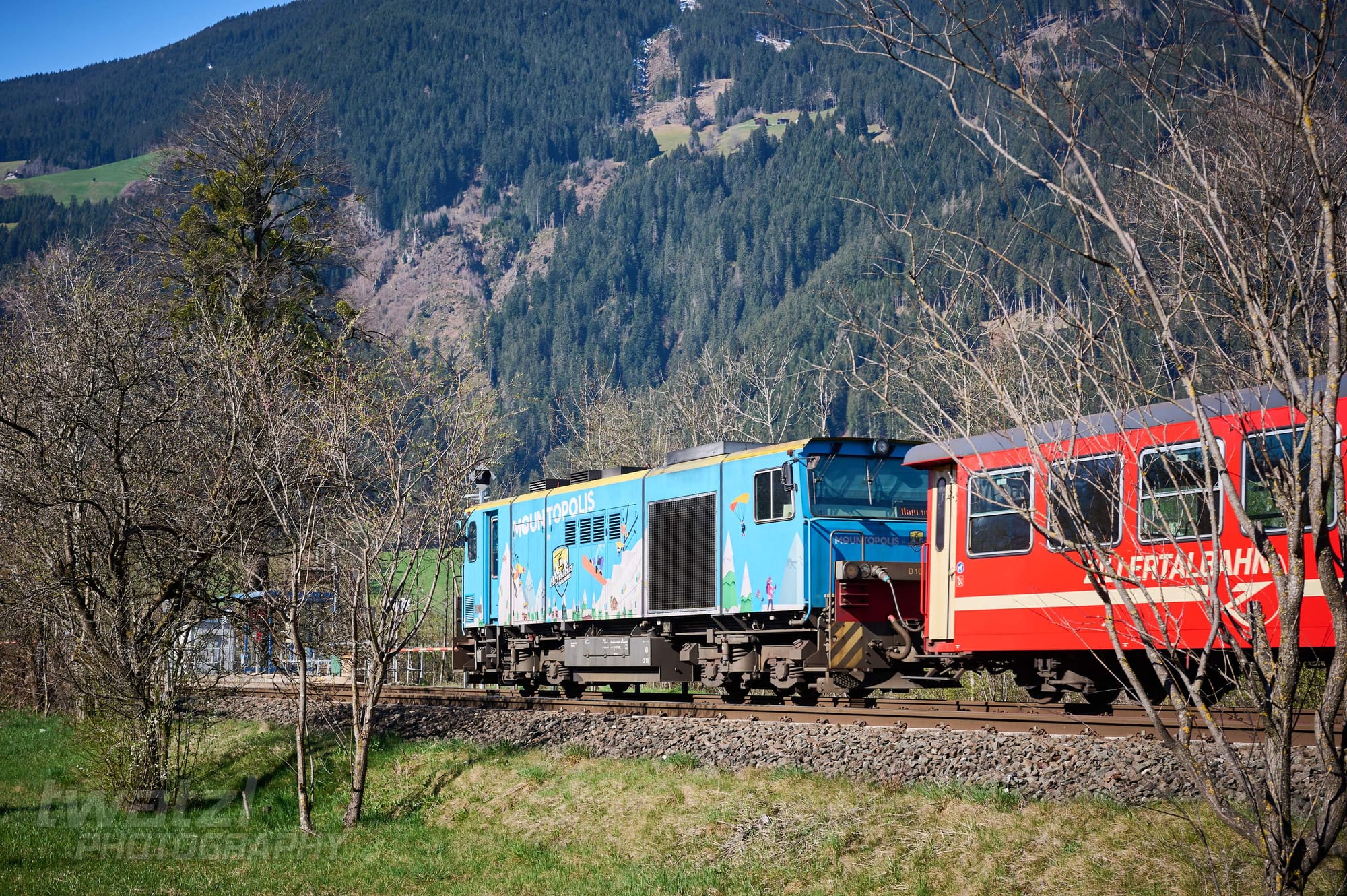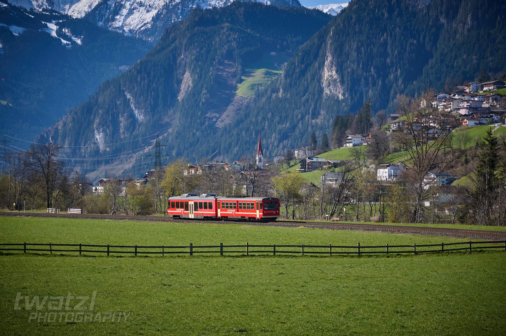 In Bichl hat man eine schöne Bergkulisse. Die Geografie der Zillertalbahn sorgt aber dafür, dass man oft ins Gegenlicht fotografieren muss. Wobei dieses Problem teilen sich viele Bahnen nördlich des Alpenhauptkammes.