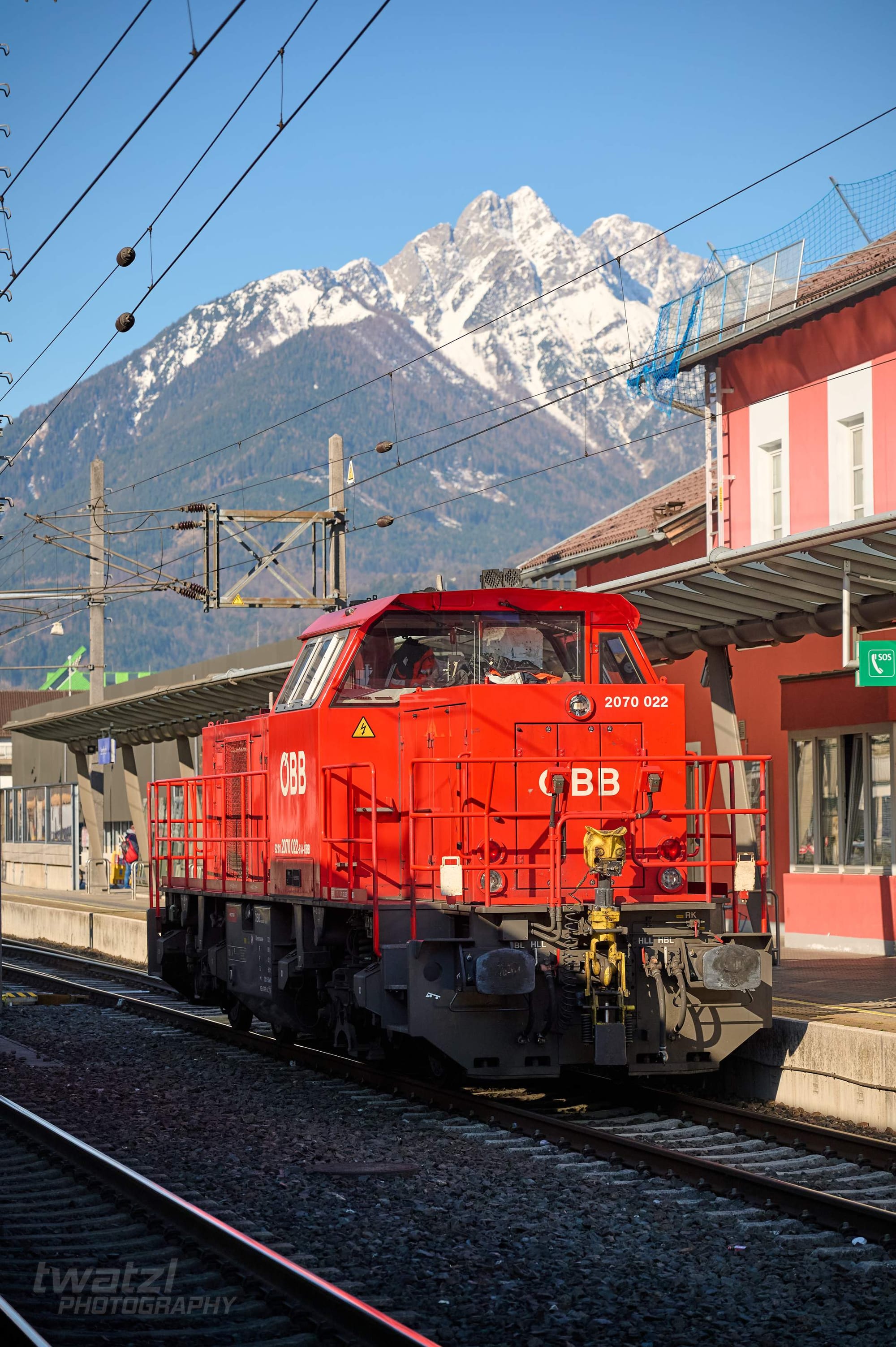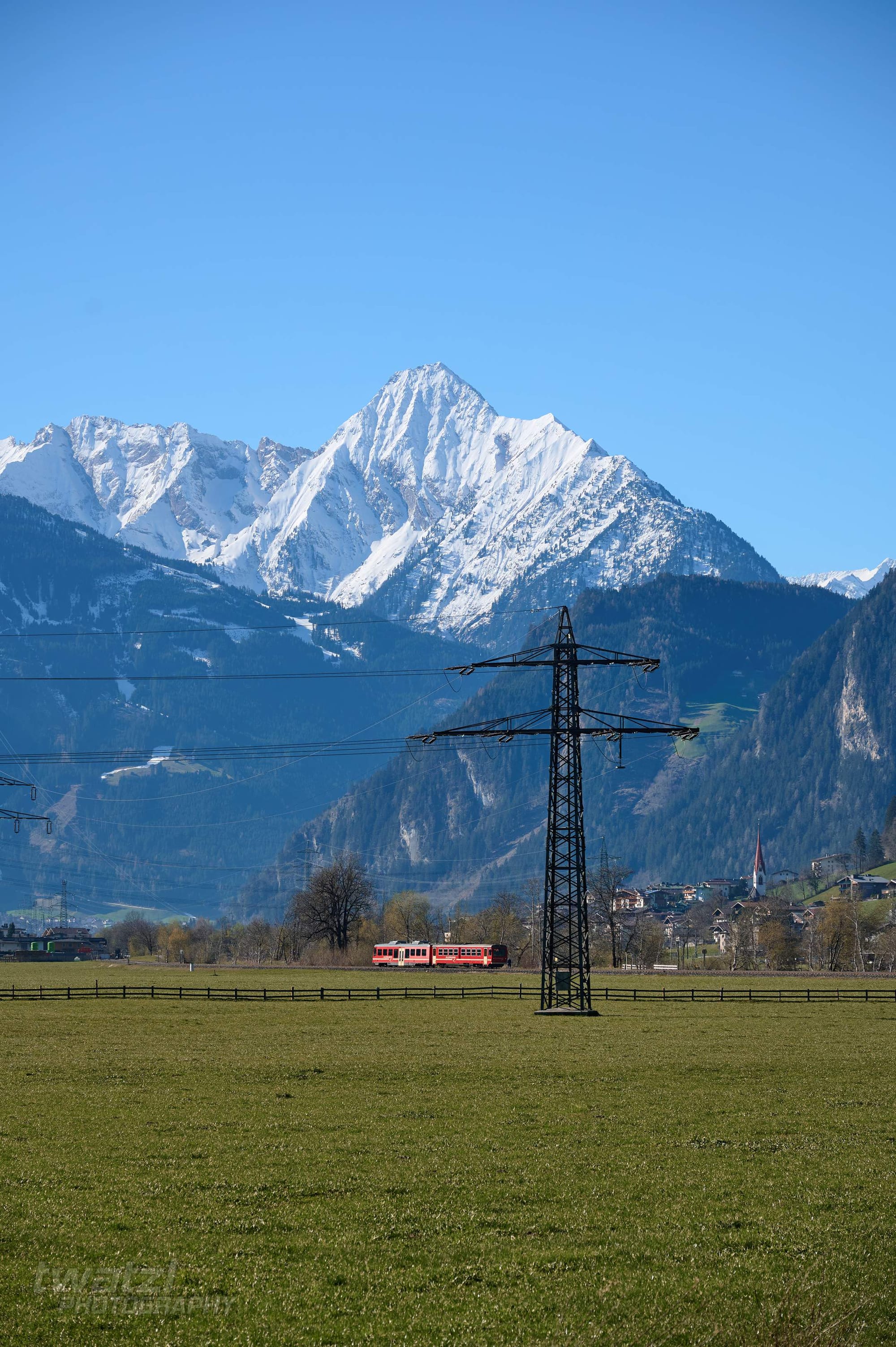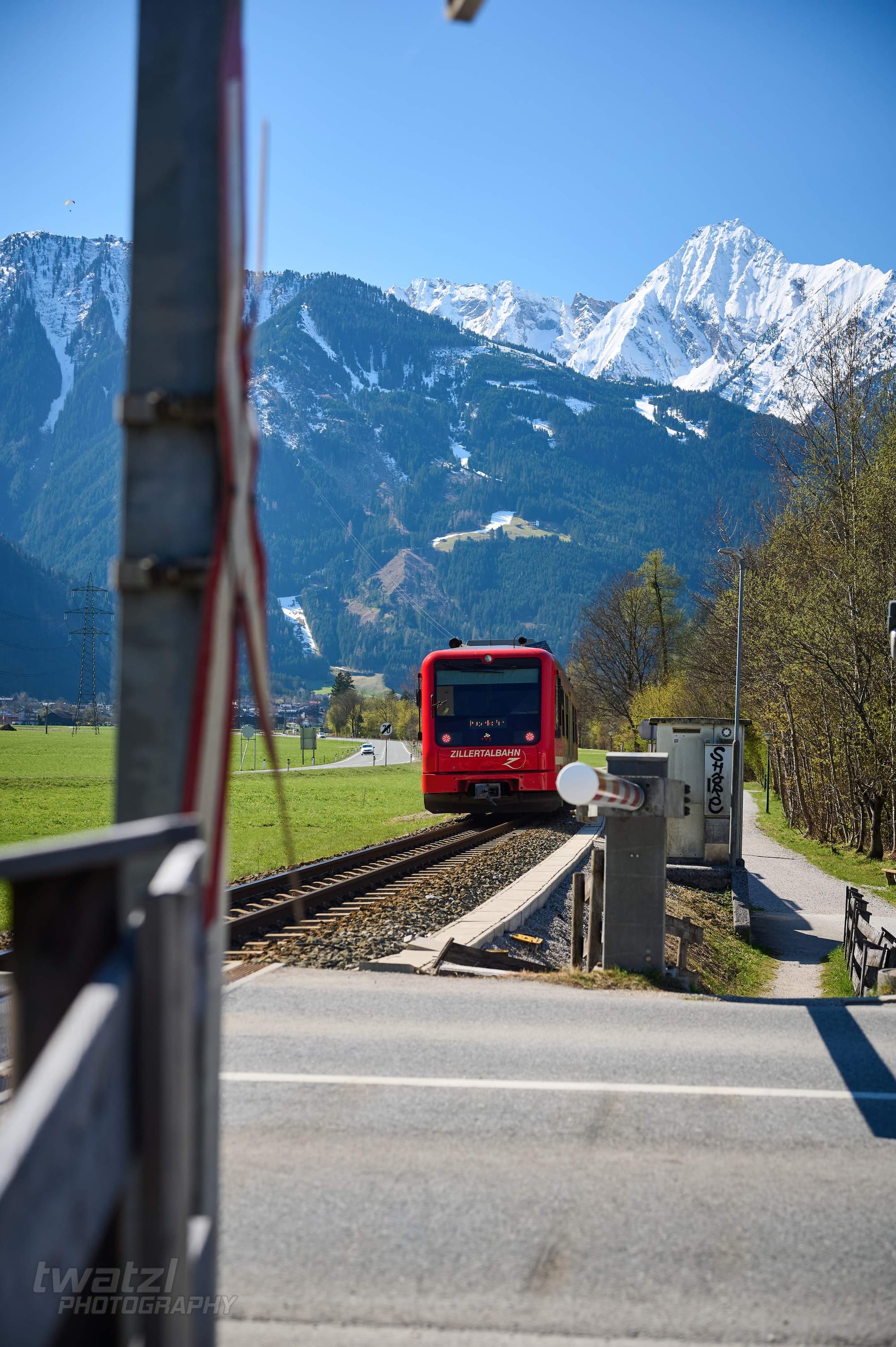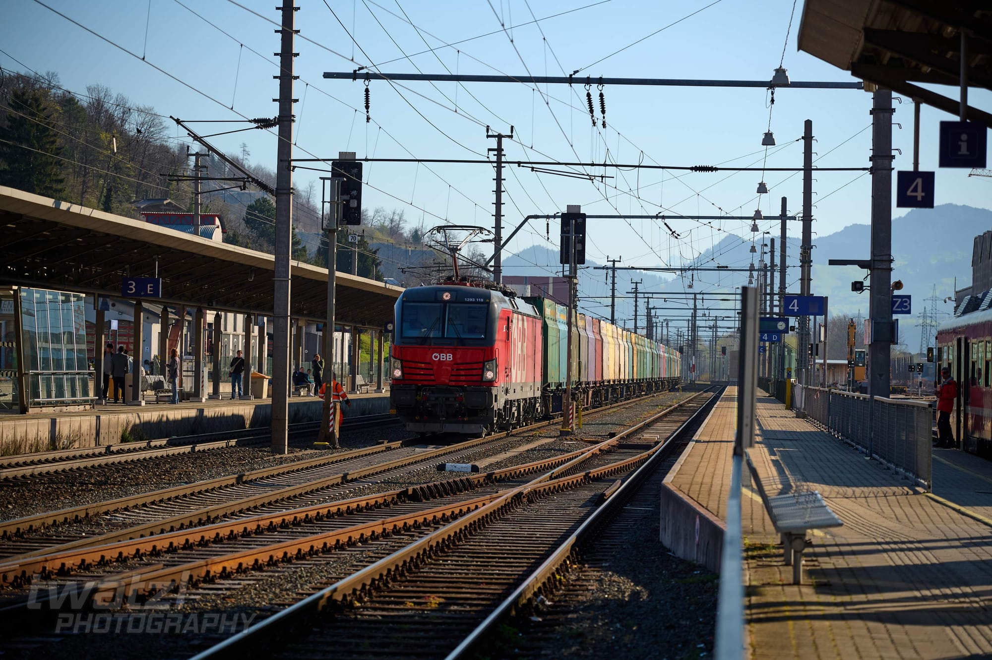In Bichl hat man eine schöne Bergkulisse. Die Geografie der Zillertalbahn sorgt aber dafür, dass man oft ins Gegenlicht fotografieren muss. Wobei dieses Problem teilen sich viele Bahnen nördlich des Alpenhauptkammes.