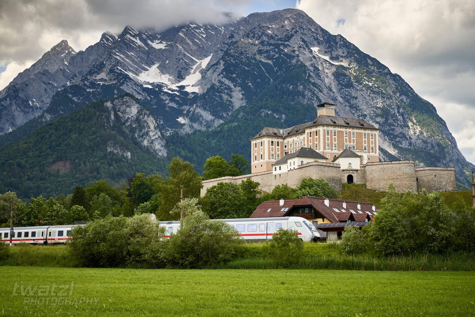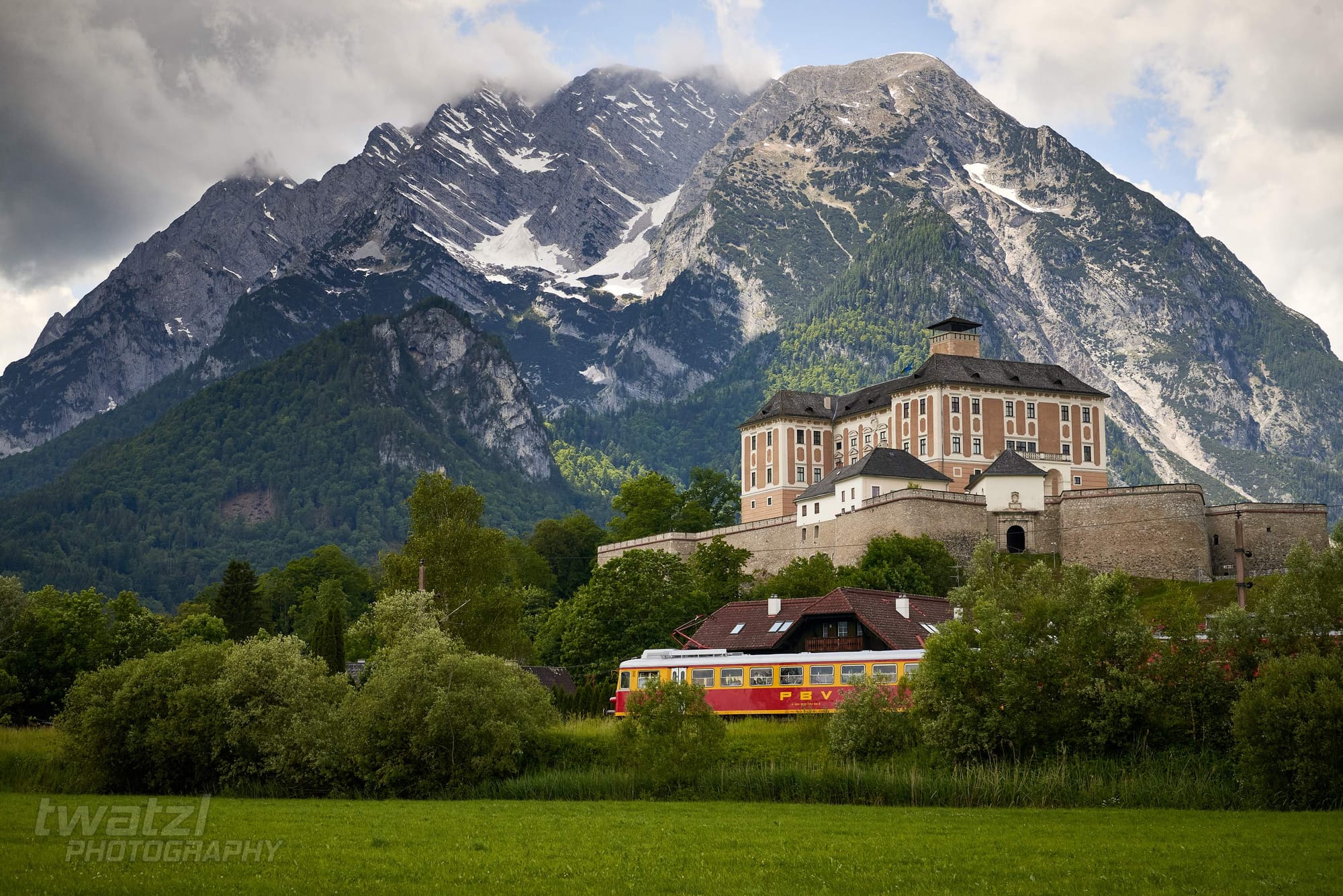 Und Schloss Trautenfels und der Grimming sind auch ohne Zug imposant.