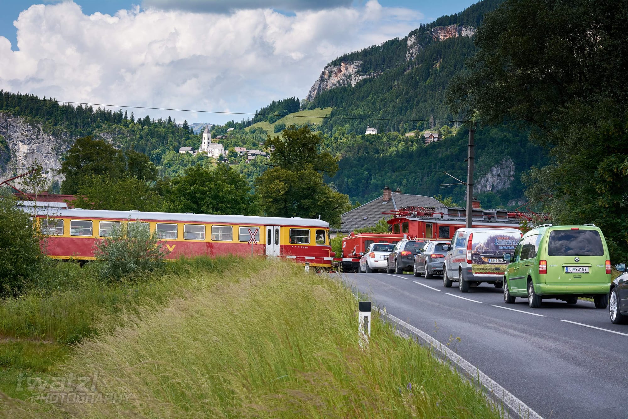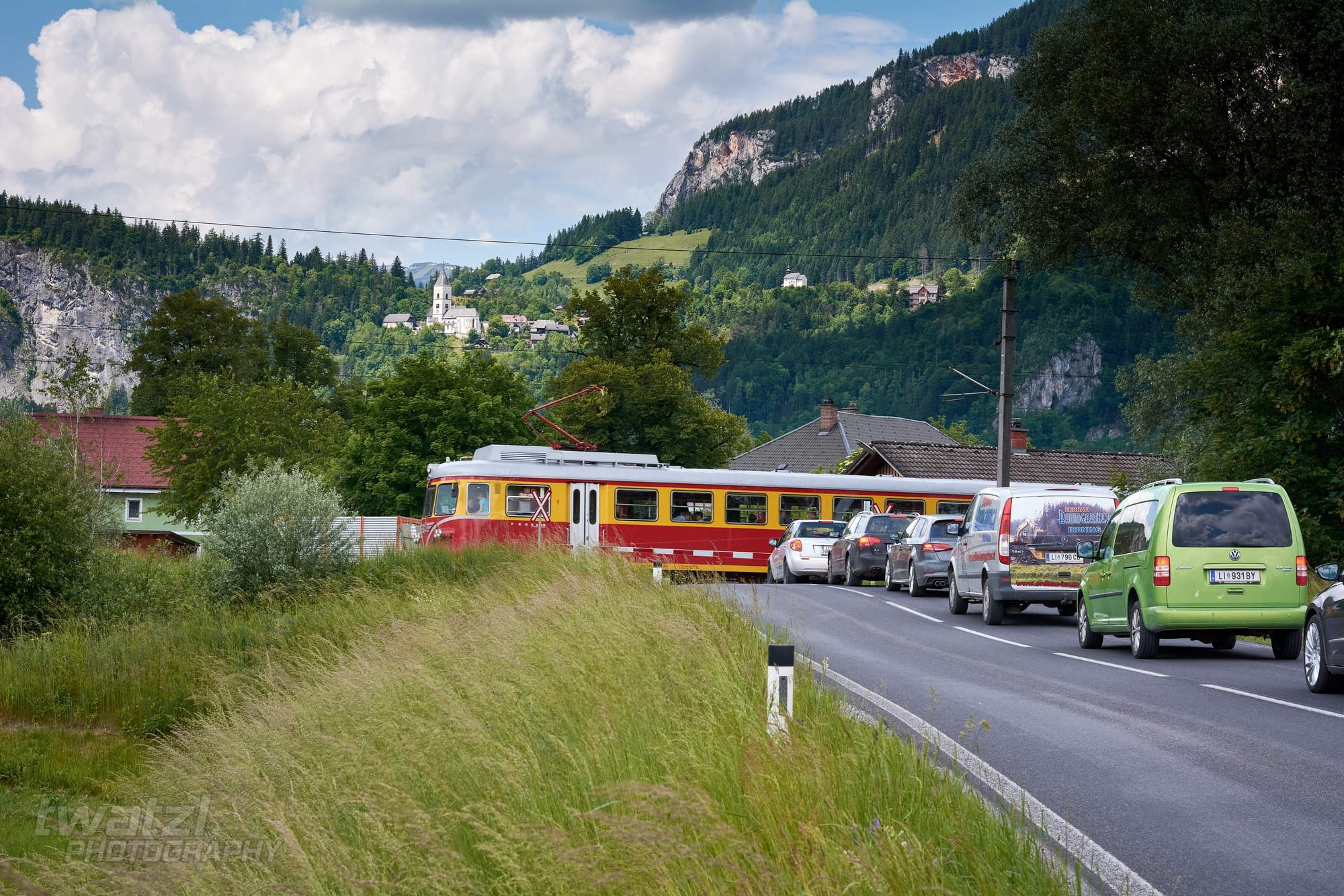 Als zweite Fotostelle hätte ich mir Obersee am Hallstätter See herausgesucht. Leider sind die Fahrpläne bei solchen Überstellfahrten selten mehr als grobe Orientierung. Insbesondere ohne notwendige Halte wird dann einfach so gefahren wie es sich ausgeht und so konnte ich mir nicht sicher sein, ob der Zug nun viel zu spät oder viel zu früh unterwegs war.