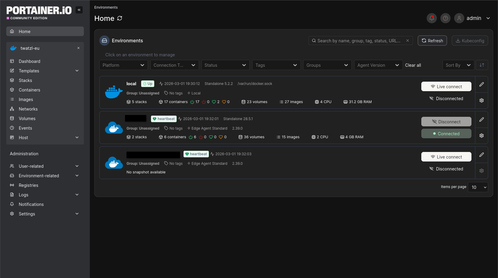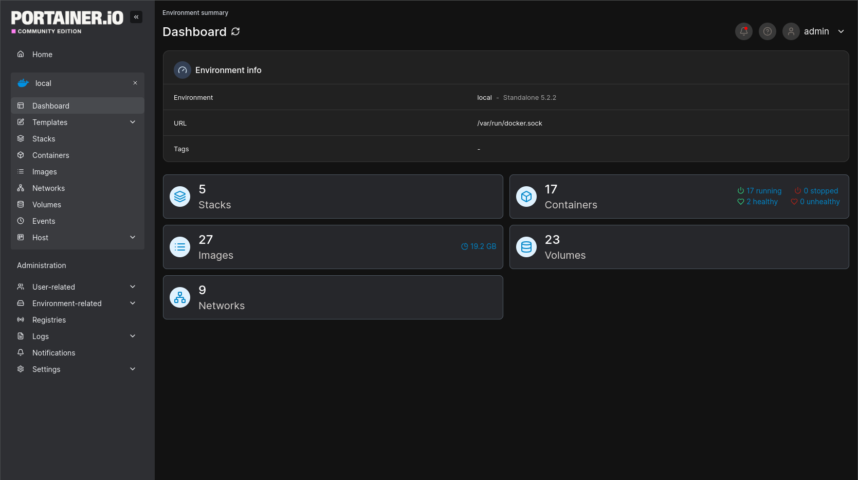 Portainer erlaubt eine einfache grafische Übersicht über die aktuell laufenden Services.