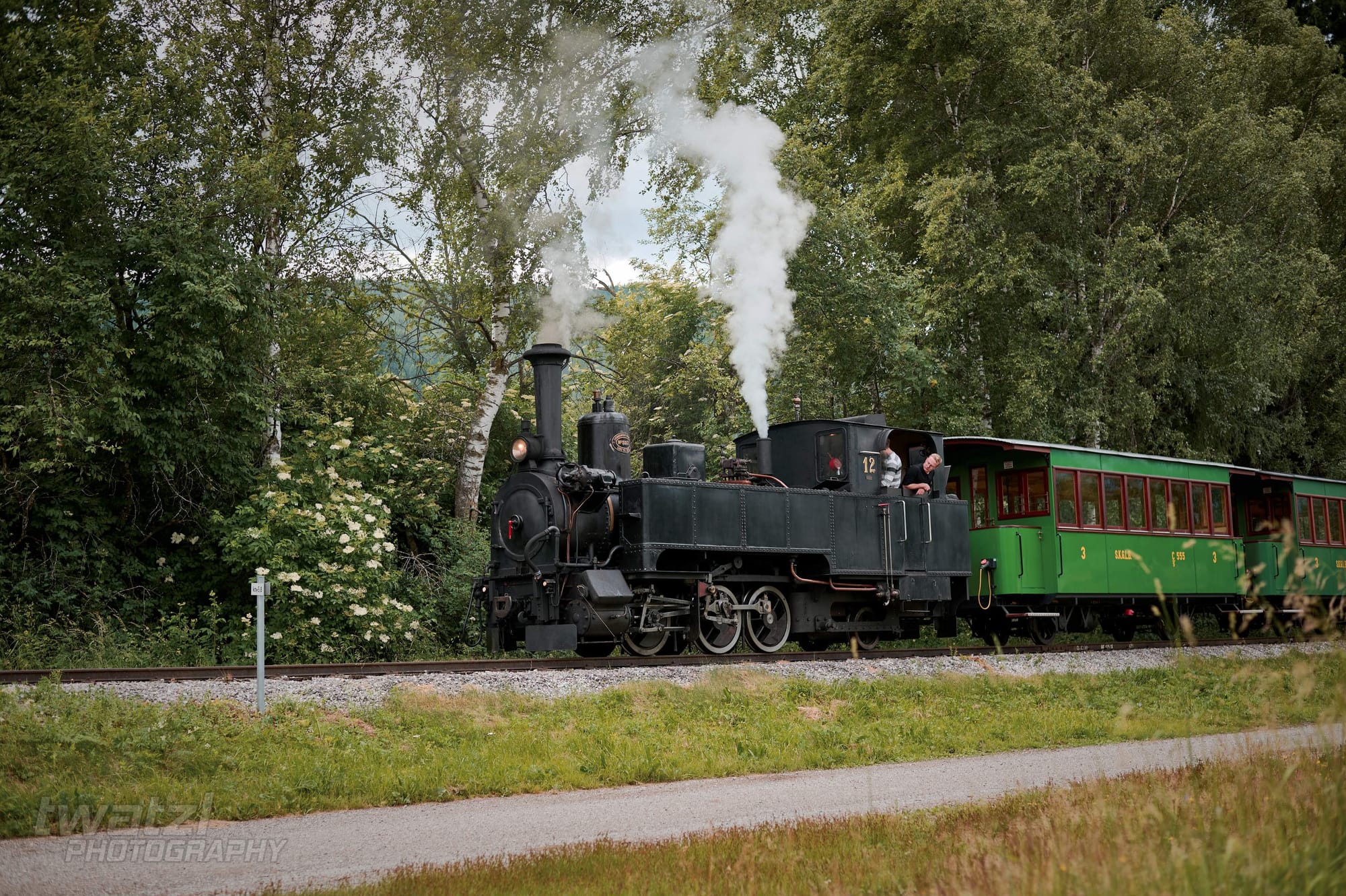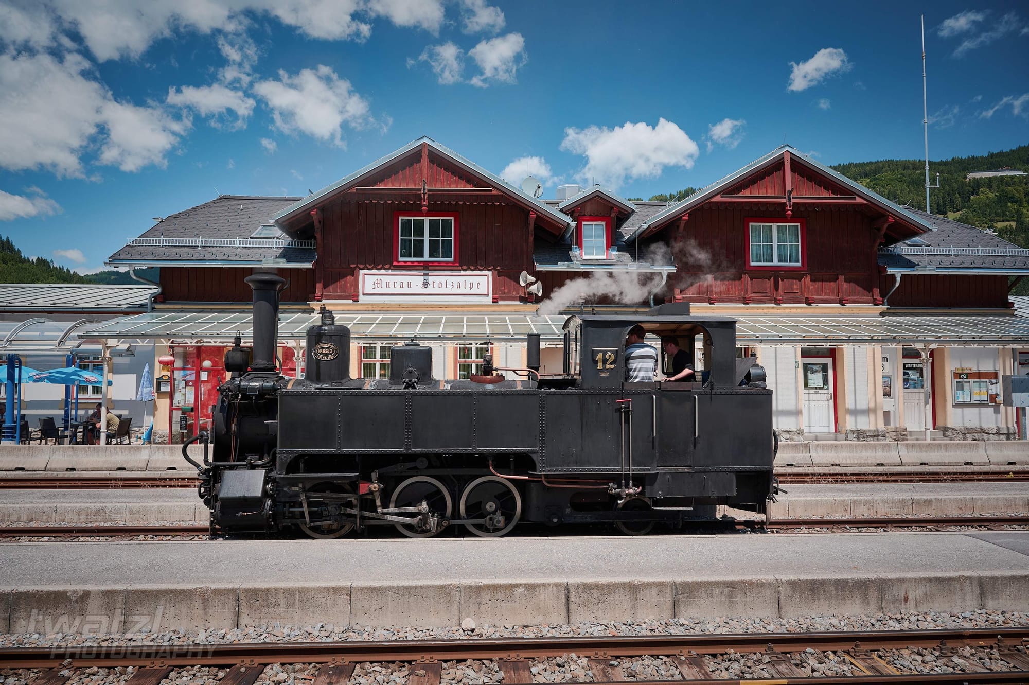 Kurz vor Stadl an der Mur ergab sich dann die nächste Möglichkeit. Zum Einsatz kam auf dieser Sonderfahrt die SKGLB 12 (oder kurz S12) gebaut 1906 war sie 1957 die Lokomotive, die den letzten Personenzug auf der Ischlerbahn gezogen hat. Mehr Infos dazu gibt es beim Club 760 und bei Eisenbahn in Österreich gibt es sogar noch Fotos der letzten Fahrt auf der Ischlerbahn 1957.