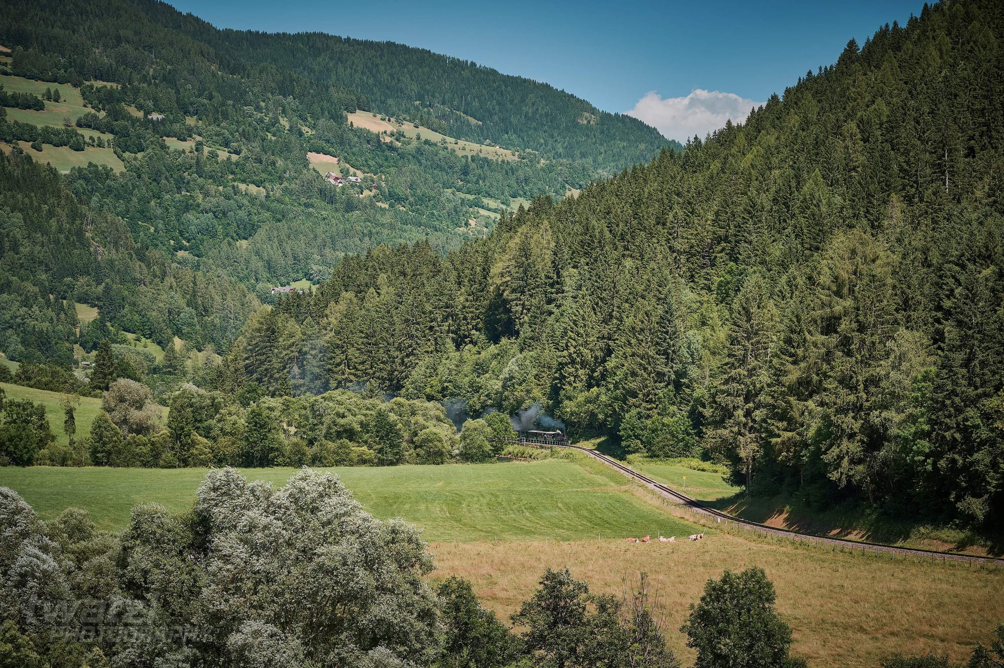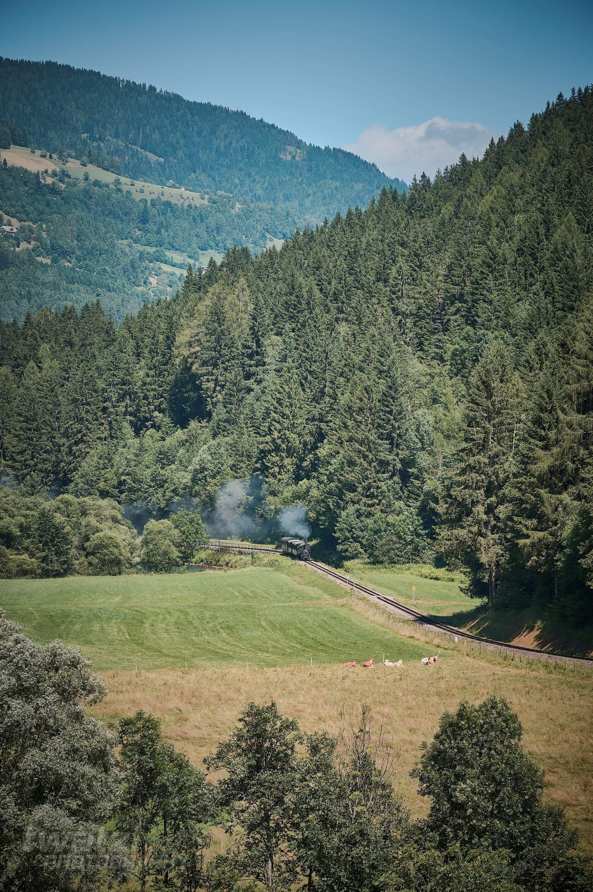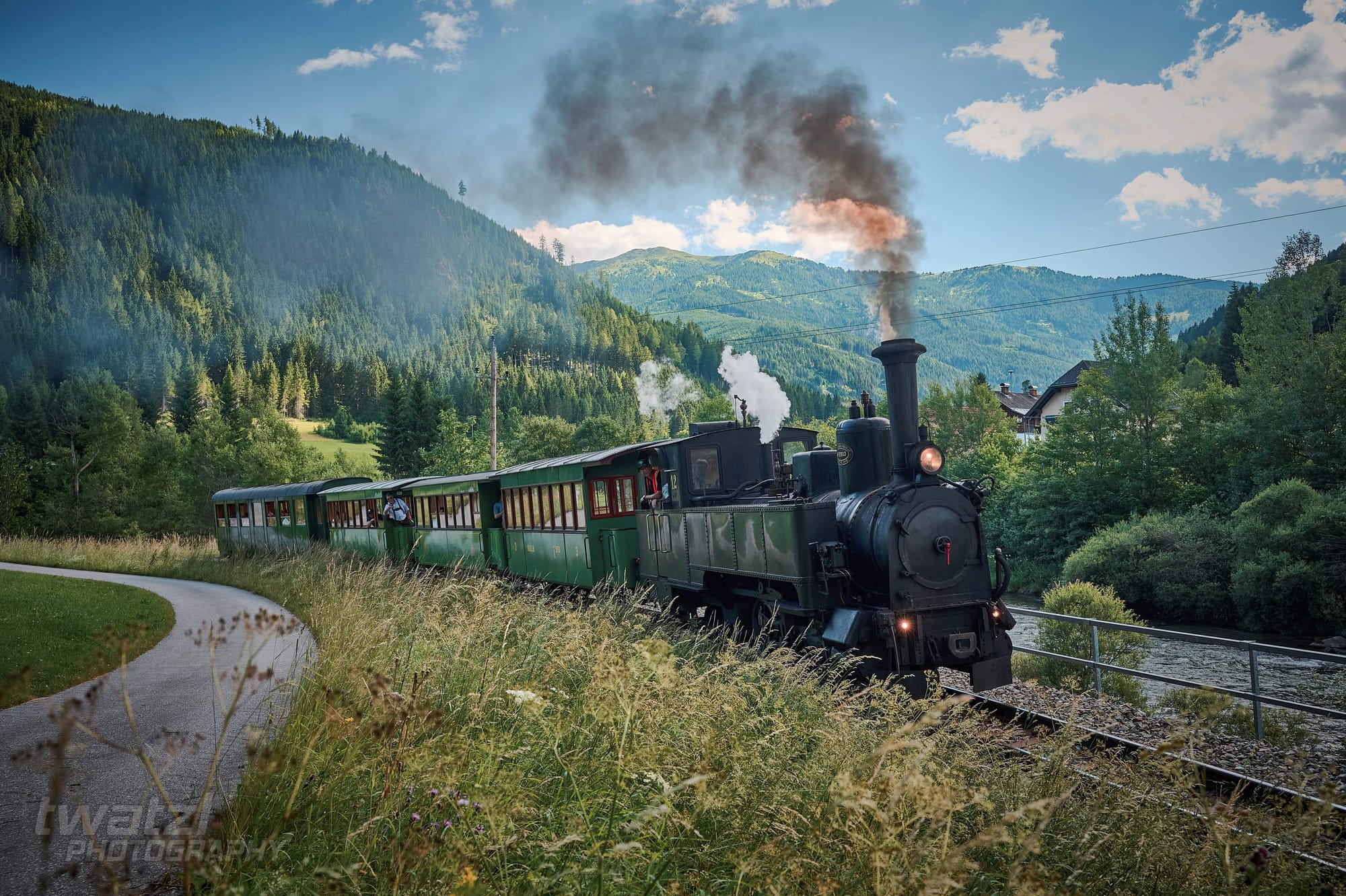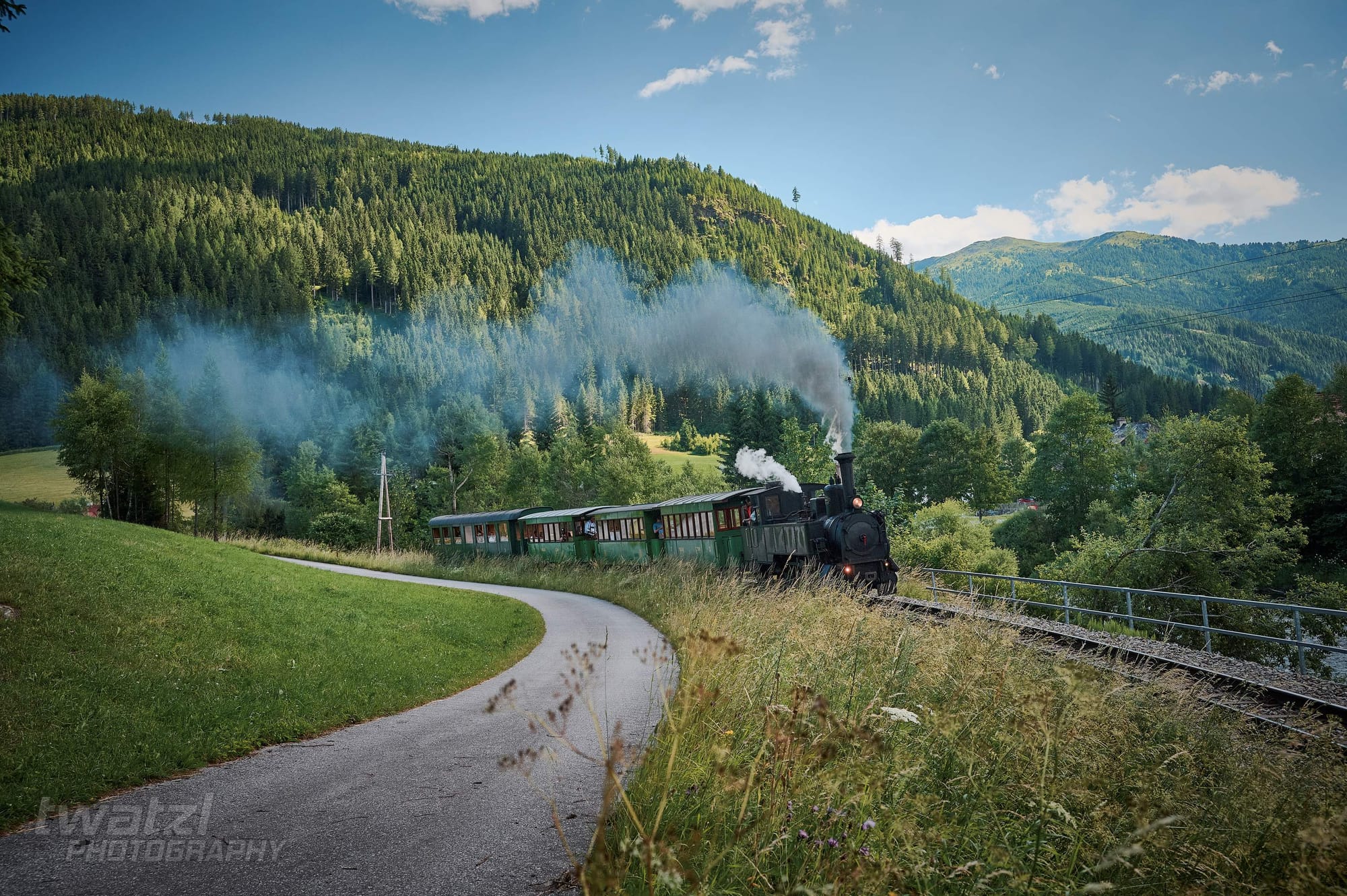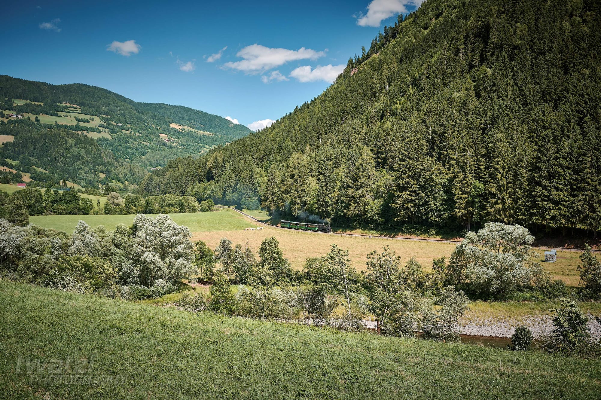 Die Murtalbahn ist relativ schwierig für Bahnfotografen. Das Gleis läuft meist Fernab der Straße, es gibt nur wenige gute Fotopunkte und diese sind immer ein Stück weit von der Straße entfernt. Das bedeutet man muss für die Zufahrt noch extra Zeit einrechnen. Und wenn man mal einen Fotoplatz verpasst gibt es oft längere Zeit keine Wendemöglichkeit auf der Bundesstraße. Also Vorbereitung ist alles auf dieser Strecke.
