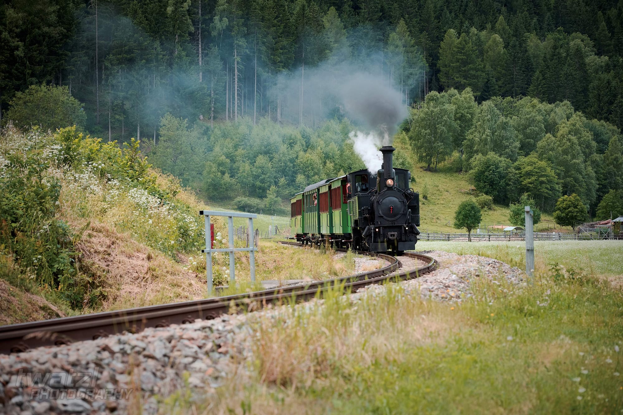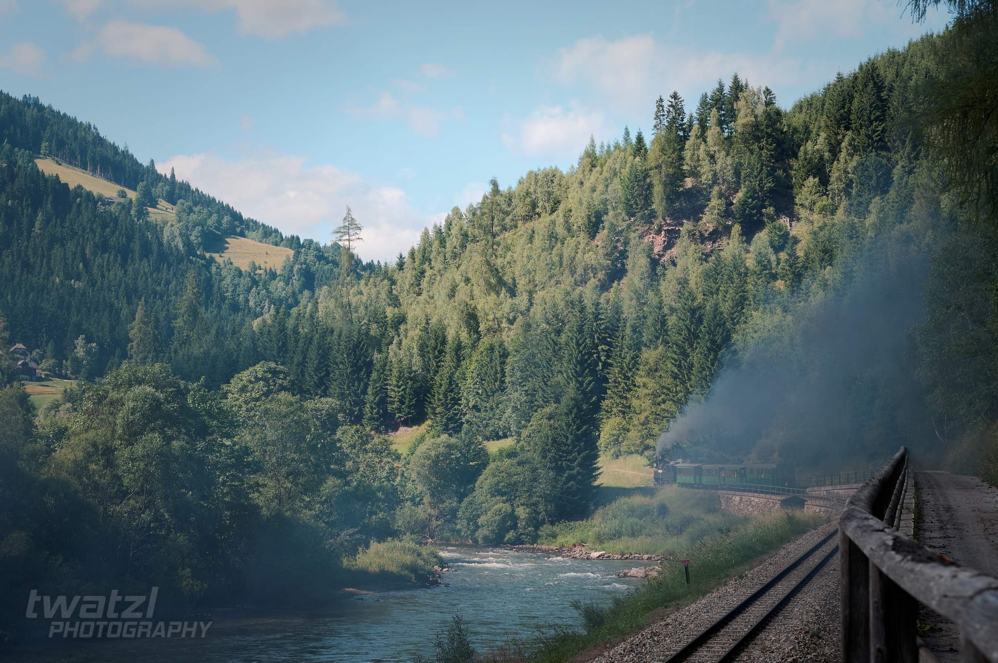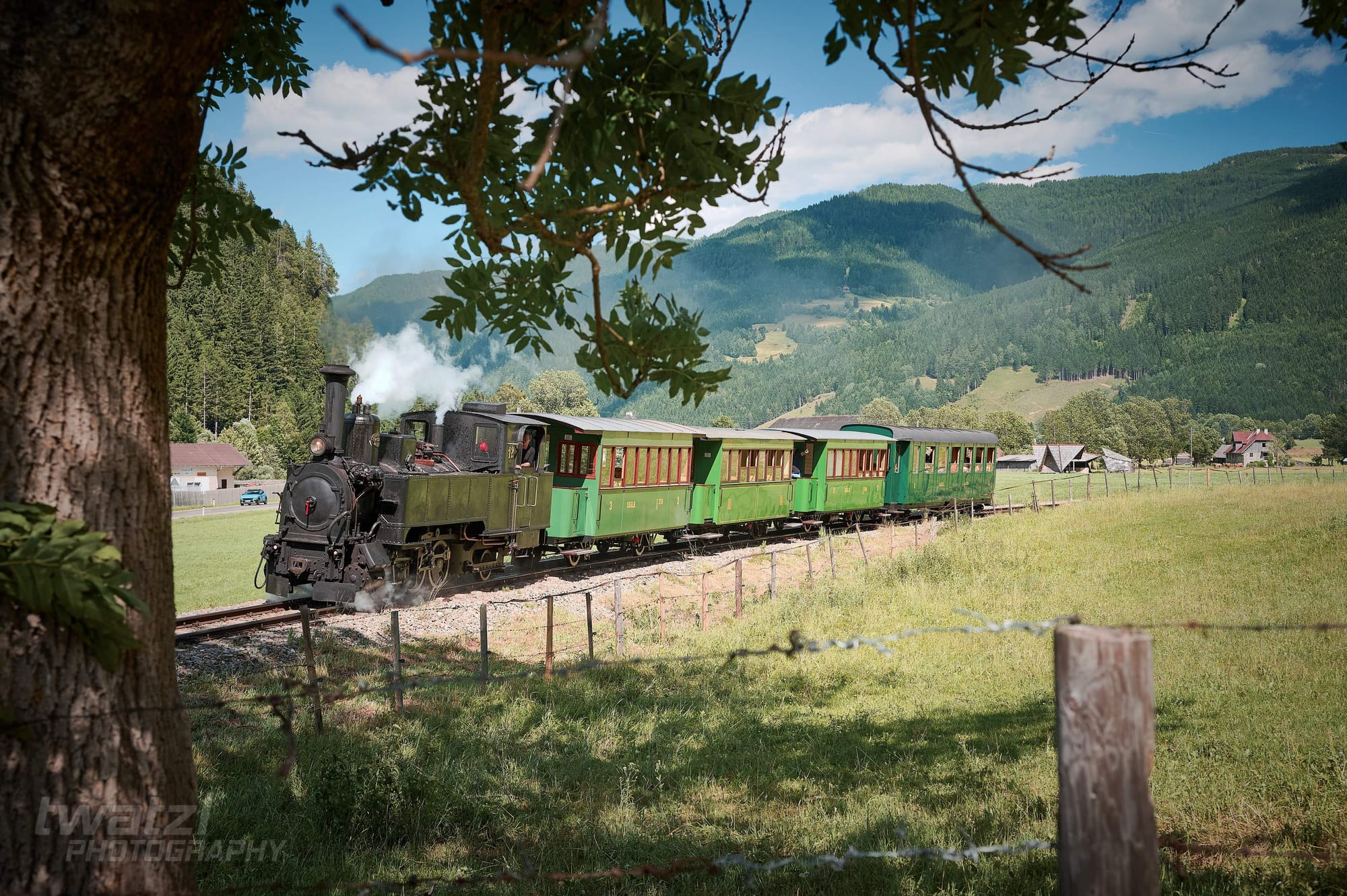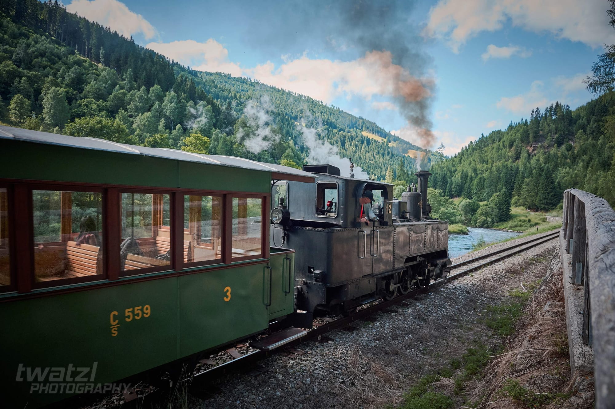 Die Murtalbahn ist relativ schwierig für Bahnfotografen. Das Gleis läuft meist Fernab der Straße, es gibt nur wenige gute Fotopunkte und diese sind immer ein Stück weit von der Straße entfernt. Das bedeutet man muss für die Zufahrt noch extra Zeit einrechnen. Und wenn man mal einen Fotoplatz verpasst gibt es oft längere Zeit keine Wendemöglichkeit auf der Bundesstraße. Also Vorbereitung ist alles auf dieser Strecke.