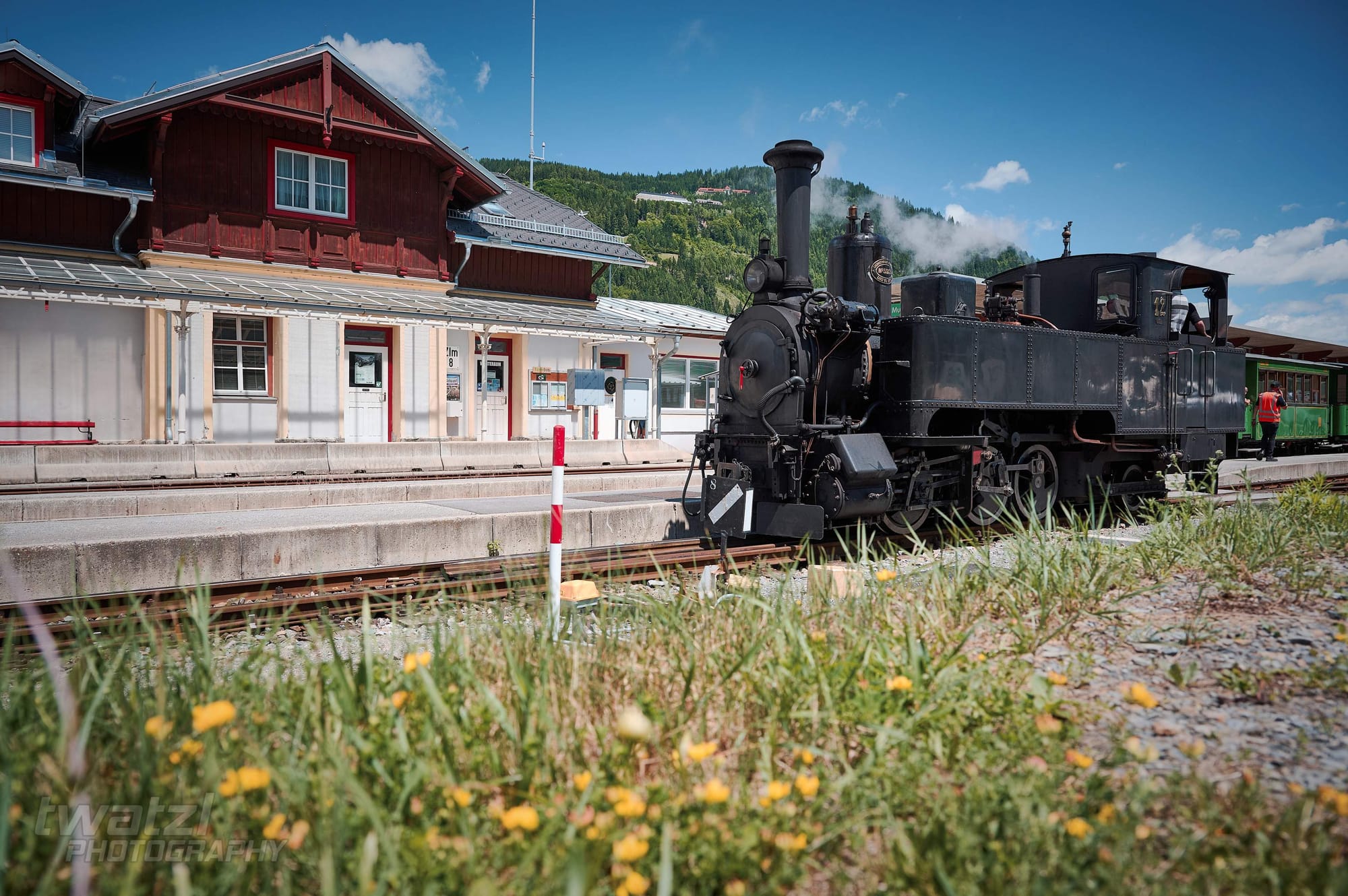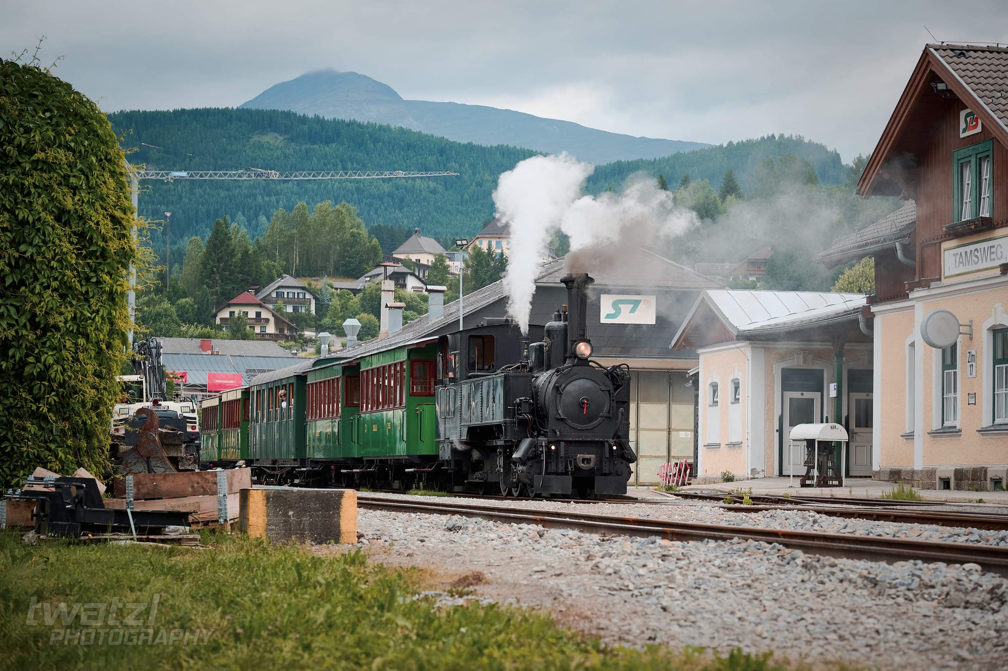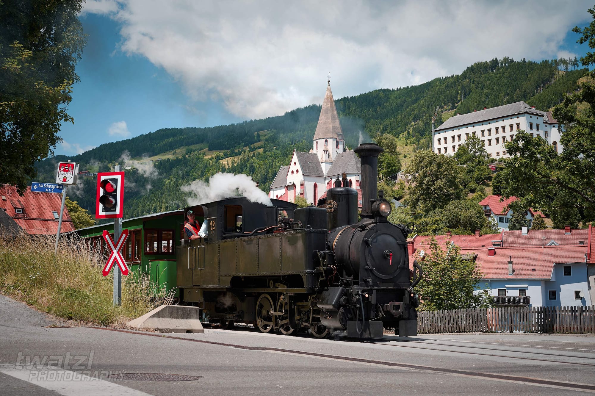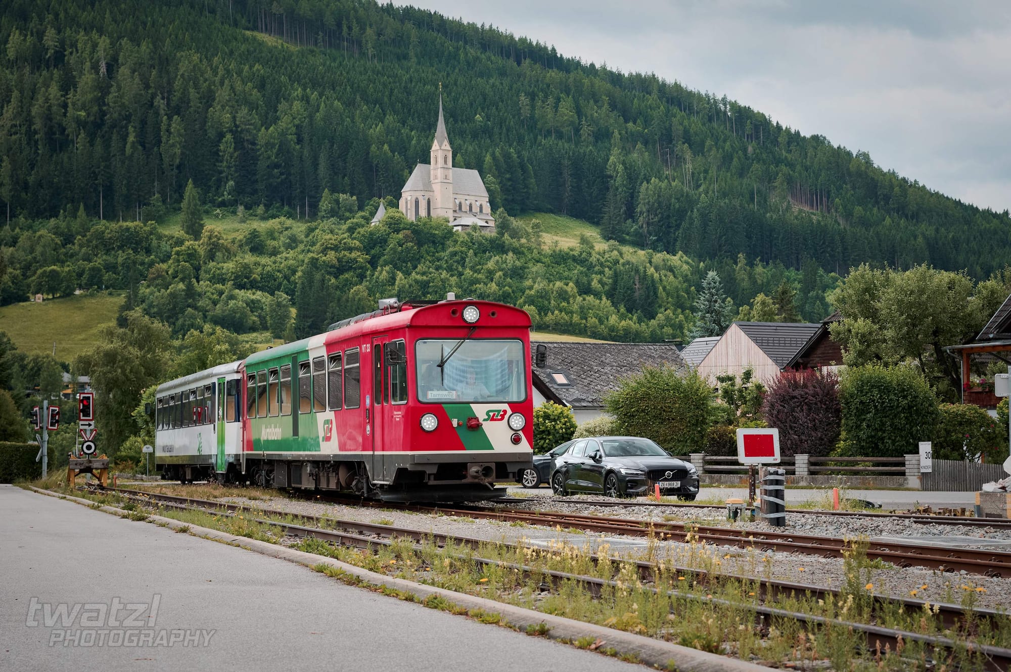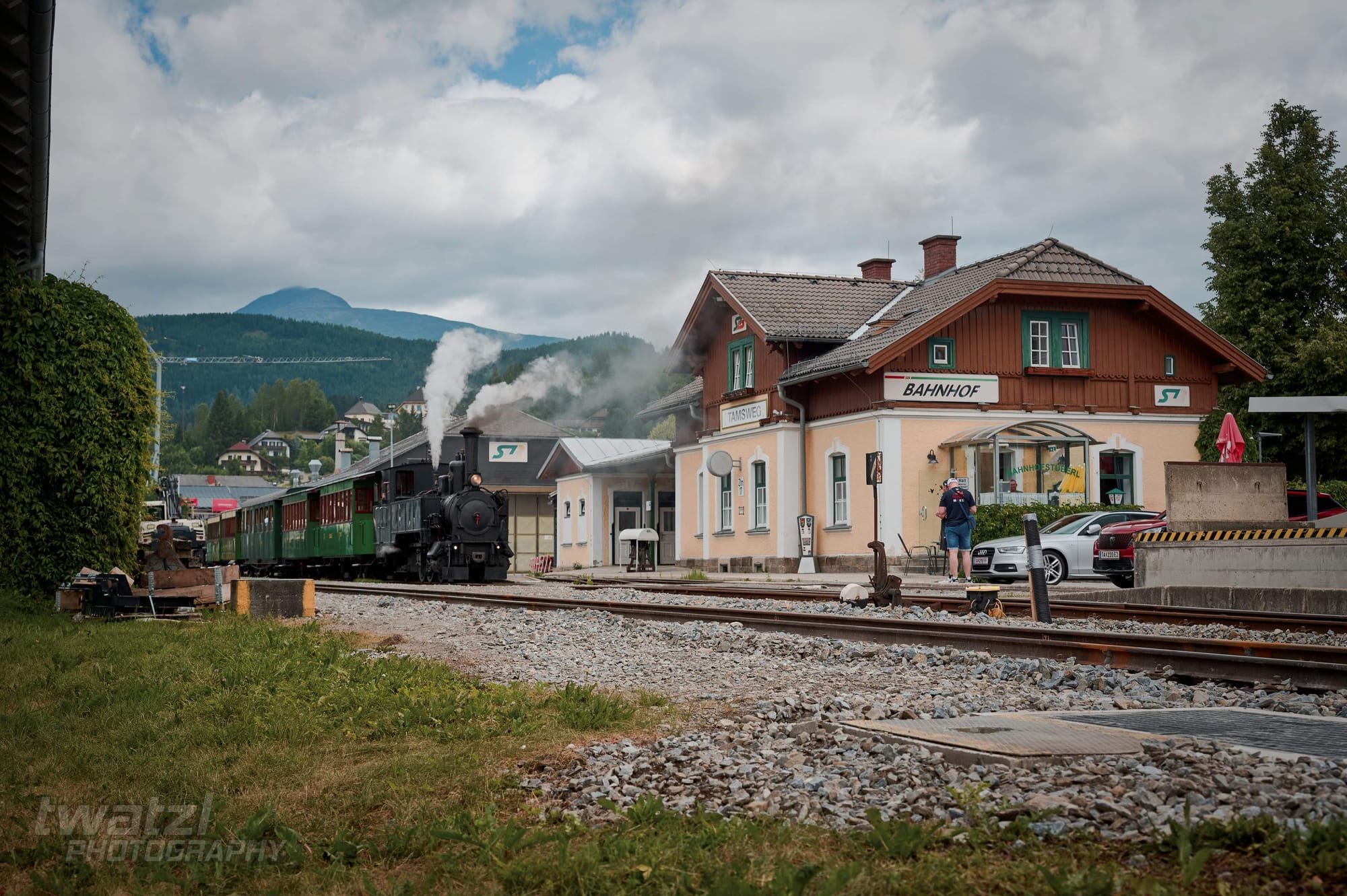 Die Murtalbahn ist relativ schwierig für Bahnfotografen. Das Gleis läuft meist Fernab der Straße, es gibt nur wenige gute Fotopunkte und diese sind immer ein Stück weit von der Straße entfernt. Das bedeutet man muss für die Zufahrt noch extra Zeit einrechnen. Und wenn man mal einen Fotoplatz verpasst gibt es oft längere Zeit keine Wendemöglichkeit auf der Bundesstraße. Also Vorbereitung ist alles auf dieser Strecke.