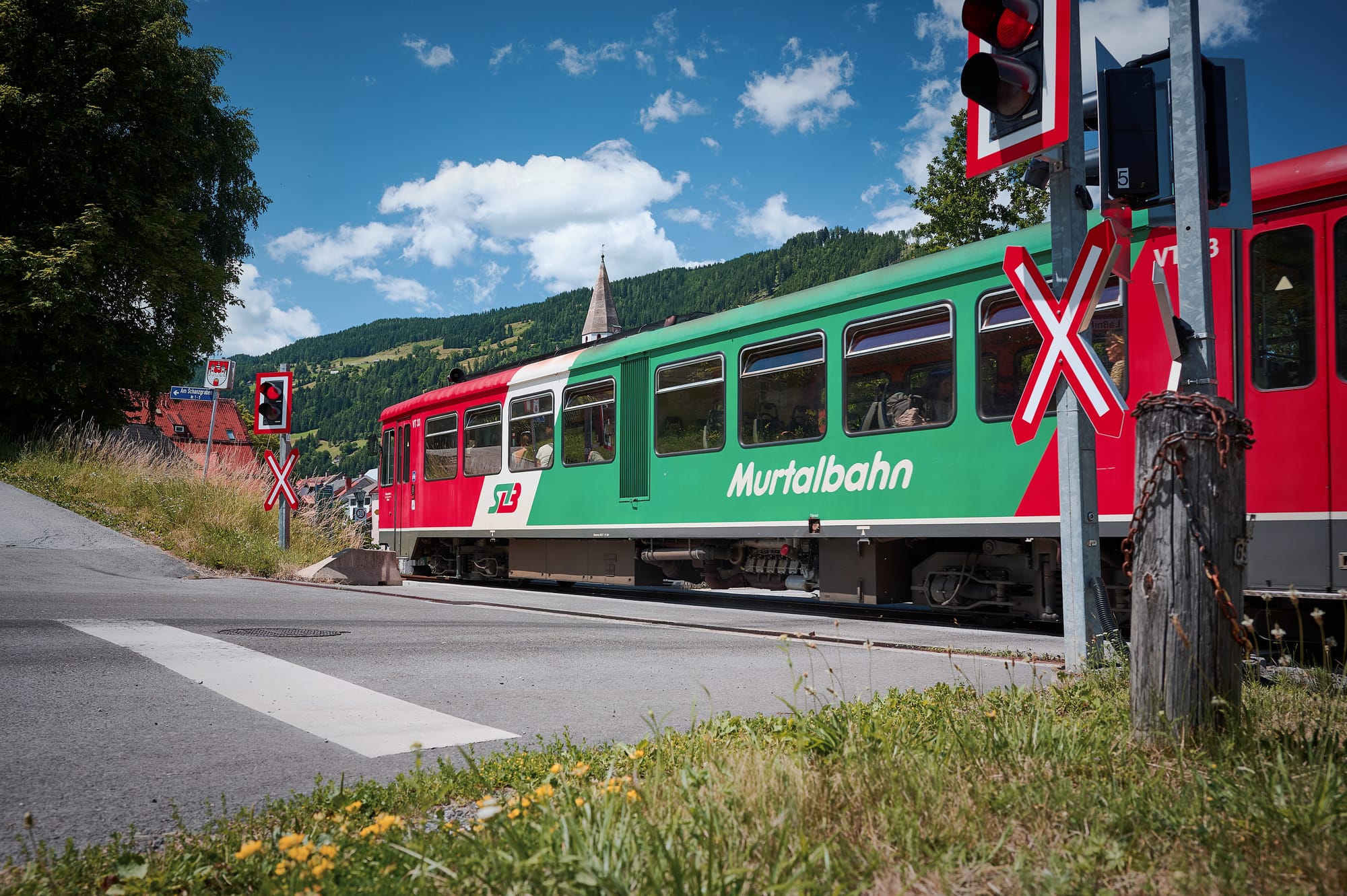 Den Start machen wir noch auf der Heimstrecke der Taurachbahn kurz vorm Bahnübergang in Mariapfarr.